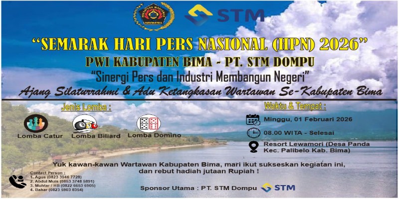 BIMA, Sangiangpost. Id_ Dalam rangka menyambut Hari Pers Nasional (HPN) 2026, Persatuan Wartawan Indonesia (PWI) Kabupaten Bima bekerja sama dengan PT STM Dompu akan menggelar kegiatan bertajuk “Ajang Silaturahmi & Adu Ketangkasan Wartawan”.